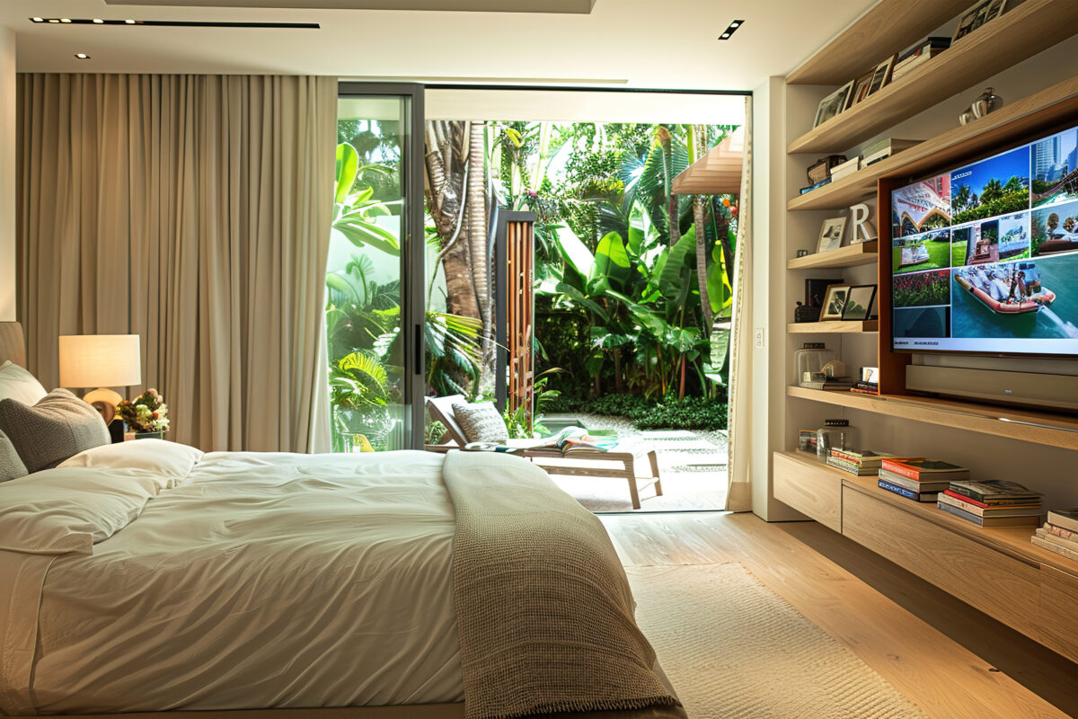 Cozy Small Modern Bedroom Interior with Seamless Connection to Garden